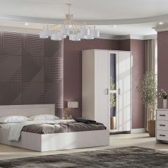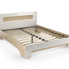 • Кровать двойная 1,4х2,0. Каркасы кроватей полностью изготавливаются из ЛДСП в цвет корпуса, за исключением внутренних, невидимых деталей, изготавливаемых из неламинированного ДСП. В качестве декора на изголовьях кроватей устанавливаются накладки в цвет фасадов.