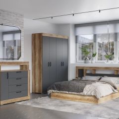 Коллекция "Прима" в модном декоре "дуб каньон/графит" удачно вписывается в городской индустриальный стиль и выглядит очень необычно и оригинально. Приятный корпус под дерево и матовые тёмные фасады - такое сочетание добавит комнате стиля.